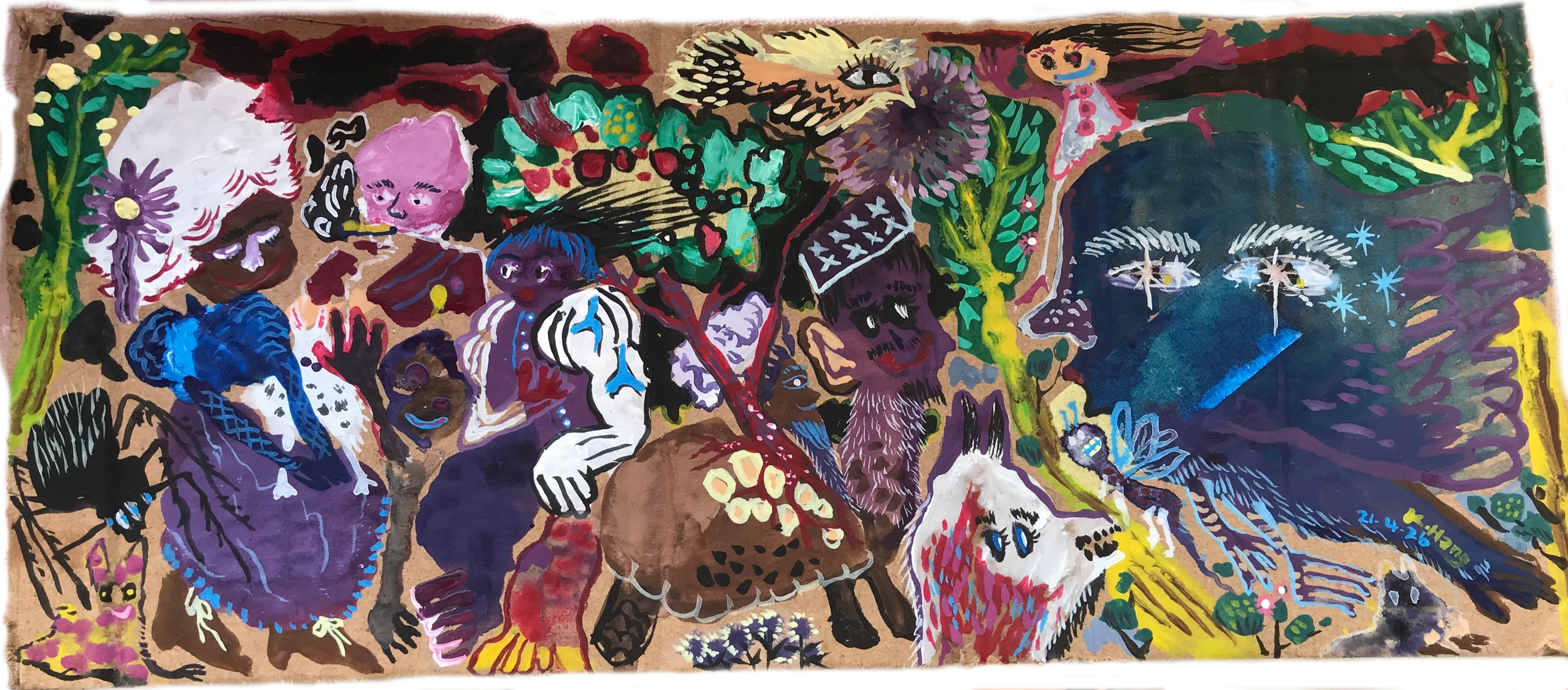 Amidst the variety of weird and wonderful scenarios in Hieng’s paintings, the artist himself is positioned as an “innocent bystander”, a witness standing by the side whom chance happened to make audience to these random events. The mere act of living and going about his day is ripe for inspiration. In his paintings we can make out the elements that make a place and culture unique, but we also enter into the perspective of an individual with a unique relationship to his world. Through Hieng’s eyes, the world seems neither bleak nor wonderful, nor matter-of-fact… The paintings recreate prosaic scenes with an attention to detail that betrays a genuine fascination with the world, yet undercut by a dry line of irony that is expressed in the grotesque or blank-eyed expressions on some of his subjects.